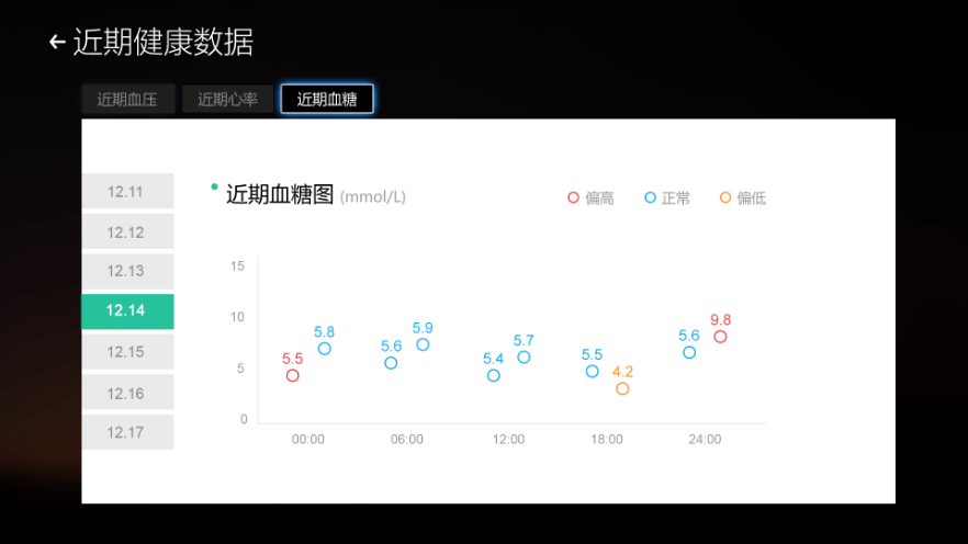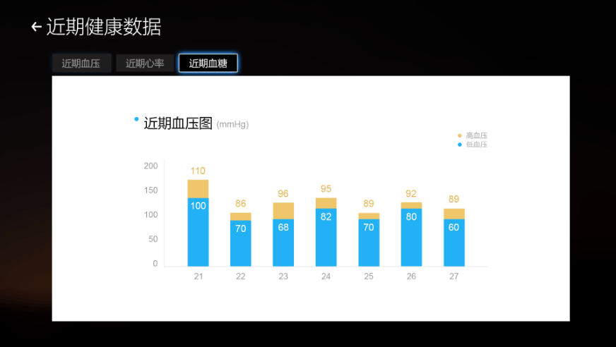 通過可視化工作站在線可建立老人的健康檔案。老人每日用智慧養(yǎng)老配套健康外設(shè)測(cè) 量血壓、血糖、心電等,測(cè)量完后的數(shù)據(jù)將會(huì)實(shí)時(shí)的傳送到電視、手機(jī)端app以及可 視化工作站。老人可以在電視上實(shí)時(shí)查看自己的數(shù)據(jù),子女可以通過手機(jī)端查看數(shù)據(jù), 醫(yī)養(yǎng)工作站可以通過后臺(tái)來查看老人數(shù)據(jù)。三位一體的為老人健康數(shù)據(jù)進(jìn)行監(jiān)測(cè),為 老人的健康做保障。